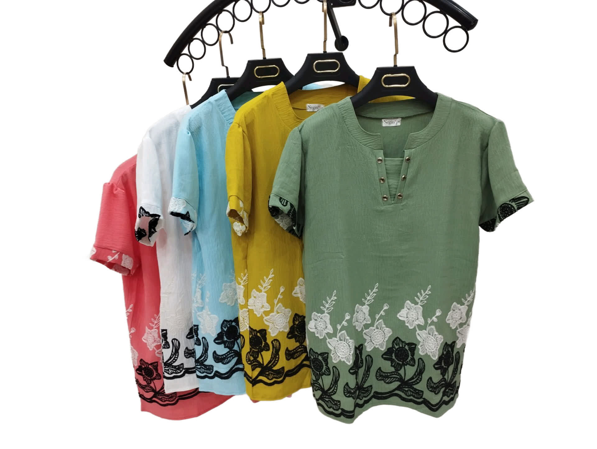 تیشرت خنک شش دکمه خامه دوزی دور تا دور مهربان